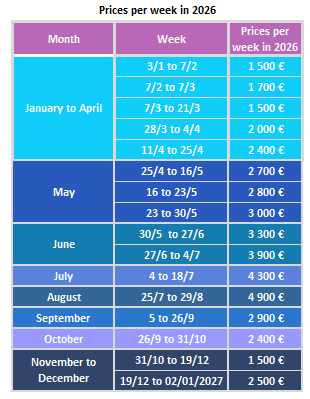 Mandatory cleaning at the end of the stay to ensure a house in perfect condition for the following holidaymakers: 250€